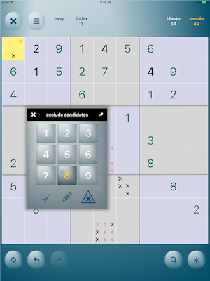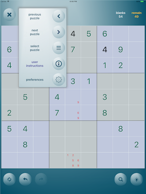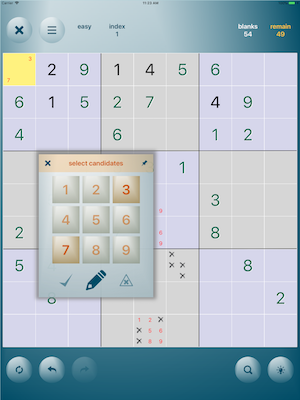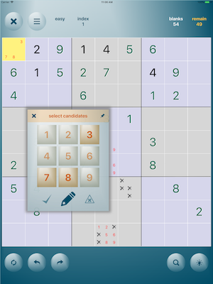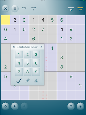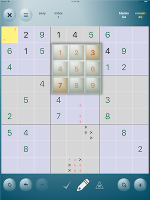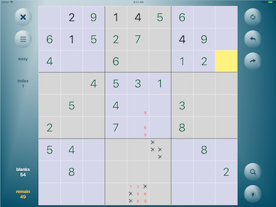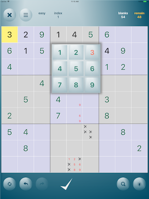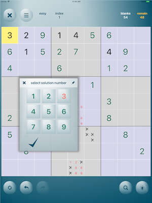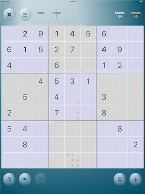 ![]() | The numbers of the initial Blank cells and the Remaining unsolved cells | |
